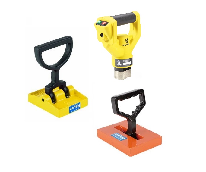 С их помощью металлические изделия могут транспортироваться перпендикулярно или горизонтально непосредственно в условиях производства, а также при перемещении на складах. Включение магнита происходит при поднятии ручки перпендикулярно основанию.