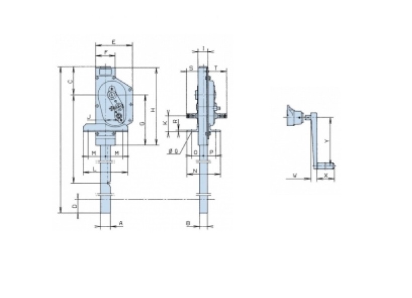 Функциональность обеспечивается цилиндрической передачей с коваными шестернями, точно выточенными кривошипной, промежуточной и реечной передачами. Домкрат оснащен безопасной пружинной кривошипной рукояткой.