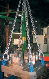 The screw-type X-TITAN lifting points TWN 1120 are predominantly used for the transportation of moulds, tools, dies, machine elements and steel constructions. The intermediate links allow an easy assembling to other lifting components. The manufacturing and testing requirements are based on DIN EN 1677-1.