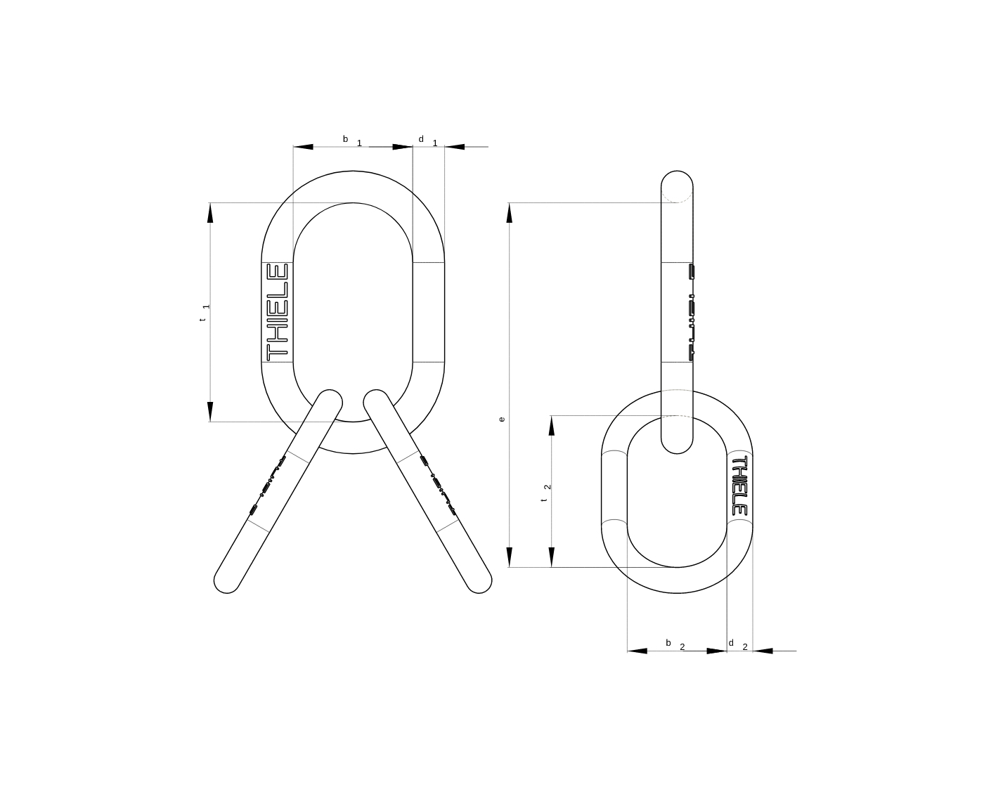 The grade 100 master link assemblies TWN 1815 are used to assemble 3- and 4-leg wire rope slings. The extra large intermediate links enable an easy assembly of wire rope slings. The manufacturing and testing requirements are based on the DIN EN 1677 parts 1 and 4, under consideration of grade 100 load capacities. The dimensions comply with the DIN 5688-3.
